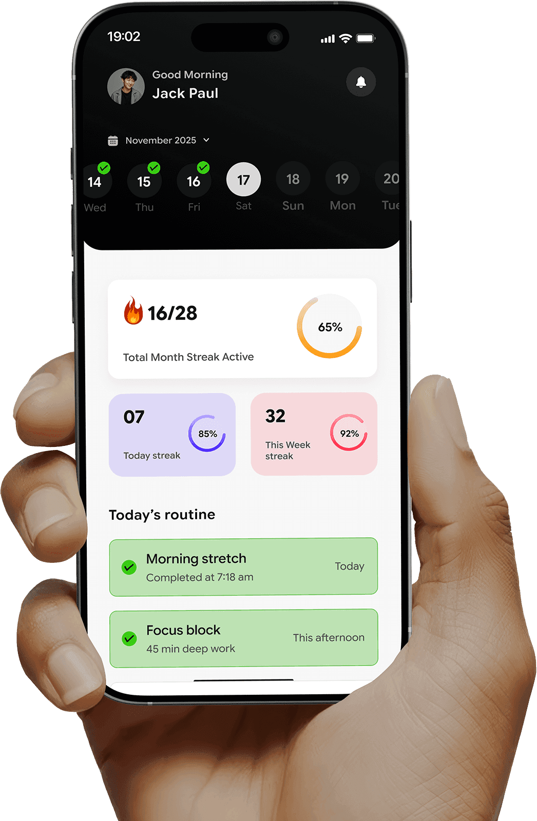 Habitline brings clarity to your routines with clean cards, realistic progress tracking, and guidance that adapts to your day.